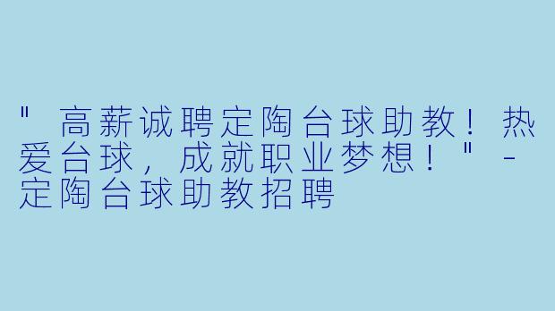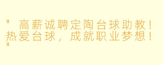 你是否对台球运动充满热情?是否希望将爱好转化为职业,与更多台球爱好者共同成长?现定陶某高端台球俱乐部面向社会公开招聘台球助教,欢迎有志之士加入!