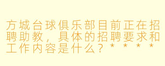 方城台球俱乐部目前正在招聘助教,具体的招聘要求和工作内容是什么?****