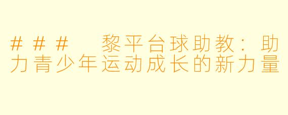 随着全民健身的推广,越来越多的青少年开始接触并热爱篮球运动。而在这一过程中,黎平台球助教的出现,无疑为青少年的篮球训练提供了重要支持。