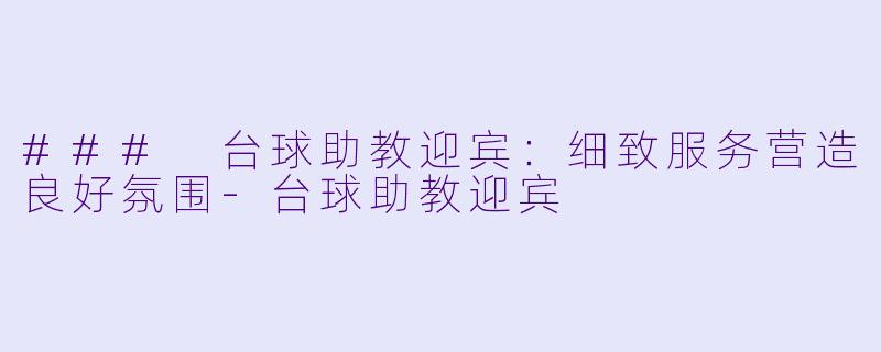 在现代休闲体育中,台球因其独特的魅力和广泛的受众而备受欢迎。为了提升台球馆的服务品质,许多地方开始引入“台球助教迎宾”这一服务角色。台球助教不仅是顾客的向导,更是球技的传授者,他们的存在让台球馆不仅仅是休闲的场所,更成为了一个学习与交流的空间。