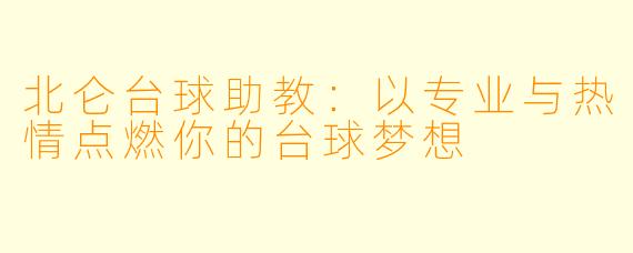 结语 在北仑,台球助教不仅是教练,更是台球运动的“引路人”。如果你也渴望在清脆的撞球声中找到乐趣与成就感,不妨走进球房,让专业助教带你开启这段充满魅力的台球之旅。