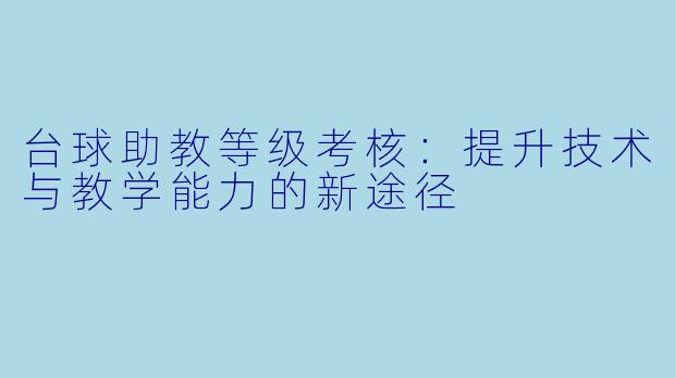 随着台球运动的广泛普及,越来越多的爱好者希望在这项运动中不断进步。而作为台球助教,除了自身技术水平的提升,还需要具备一定的教学能力。因此,台球助教等级考核应运而生,成为提升助教综合素质的有效途径。