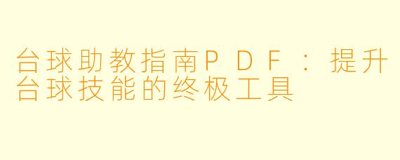在台球运动中,技巧与策略是决定胜负的关键。为了帮助爱好者更好地掌握这项运动,《台球助教指南PDF》应运而生。这本指南不仅适合初学者,也为有一定基础的选手提供了深入的技巧解析。