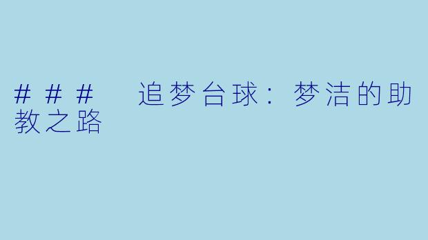 梦洁从小就对台球产生浓厚兴趣,经过多年的刻苦训练,她终于在比赛中崭露头角。取得的优异成绩让她深刻意识到,台球不仅是一项运动,更是一种精神。于是,成为一名台球助教的梦想油然而生。