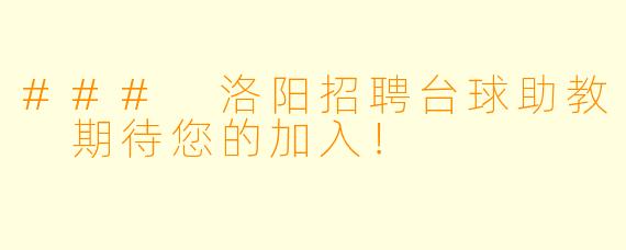 随着台球运动的日益普及,洛阳的台球场馆需求不断增加,为了提升服务质量,我们现诚邀热爱台球的您加入我们的团队,担任台球助教。