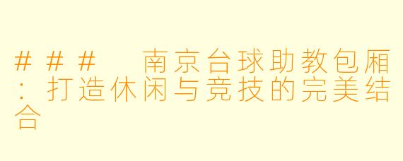 ### 南京台球助教包厢:打造休闲与竞技的完美结合