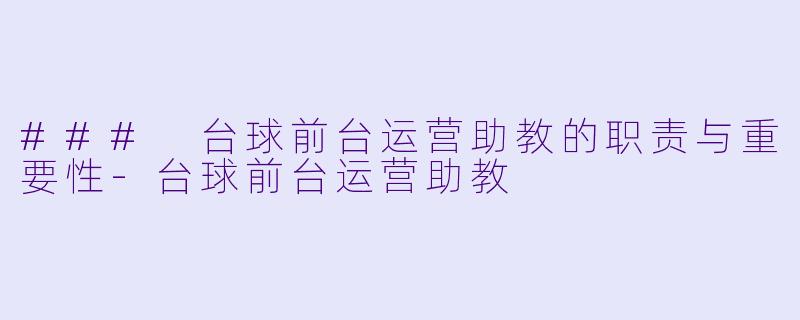 总之,前台运营助教在台球馆的运营中不仅是服务的前线,更是提升顾客体验、推动业务增长的重要驱动力。