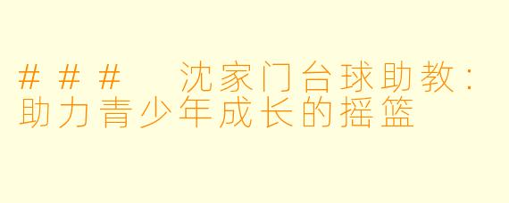 在美丽的沈家门,台球逐渐成为了一项受欢迎的运动。为了更好地推广这项运动,沈家门台球助教应运而生。作为培养青少年台球爱好者的重要平台,沈家门台球助教不仅提供专业的技术指导,还融入了团队合作和竞技精神的培养。