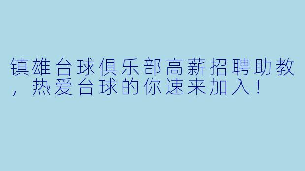 镇雄台球俱乐部因业务扩展,现面向社会公开招聘台球助教若干名。无论你是台球爱好者,还是具备一定教学经验的专业人士,只要你对台球充满热情,乐于分享与教学,我们都欢迎你的加入!