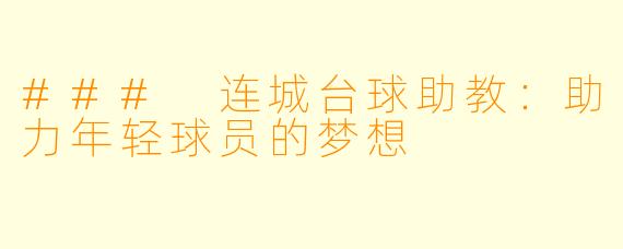 在连城这座充满活力的城市,台球运动逐渐成为年轻人追求梦想的热土。为了更好地培养台球人才,连城开设了台球助教项目,旨在为年轻球员提供专业的指导与支持。