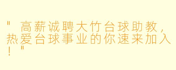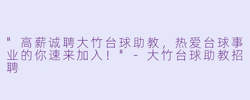 大竹台球俱乐部因业务扩展需要,现面向社会公开招聘台球助教多名。无论你是台球爱好者,还是具备一定教学经验的从业者,只要你对台球充满热情,乐于分享与指导,我们都欢迎你的加入!