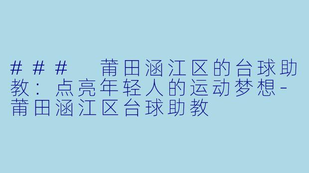 ### 莆田涵江区的台球助教:点亮年轻人的运动梦想