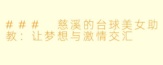 ### 慈溪的台球美女助教:让梦想与激情交汇
