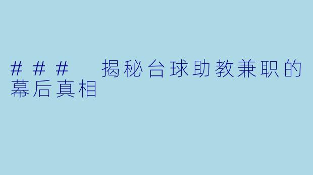 随着台球运动的普及,越来越多的年轻人选择成为台球助教兼职,以此赚取额外收入。然而,台球助教的兼职工作背后却隐藏着许多不为人知的内幕。