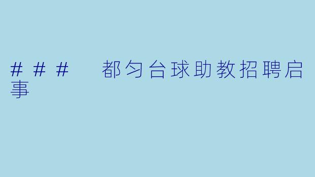 我们将为所有助教提供系统的培训和发展机会。欢迎各位台球爱好者报名,应聘简历请发送至邮箱:example@domain.com。期待您的加入,共同推广台球运动,培养更多台球人才!